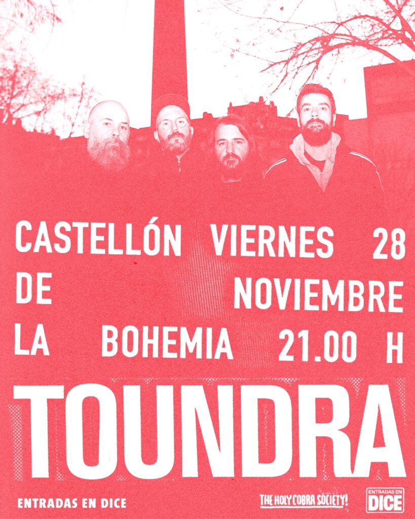 Els madrilenys Toundra començaren el seu viatge l’any 2007. En poc de temps s’han convertit en una de les bandes instrumentals més reconegudes d’Europa, gràcies als seus riffs poderosos, les melodies i les atmosferes intrincades. Després de set discos que els van fer aparéixer en les llistes dels més venuts i gires per tot el continent, en La Bohemia presentaran el seu nou disc que prompte veurà la llum i repassaran els millors temes de la seua discografia.