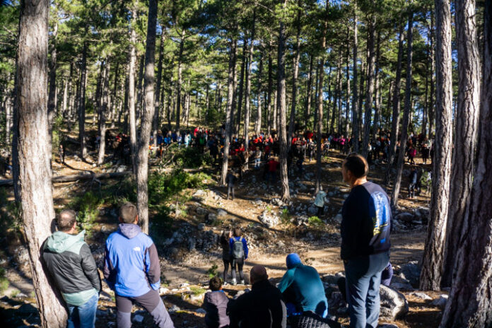 Finalmente, el domingo por la mañana se salió hacia el bosque Palomita para talar las barras que formarán parte del esqueleto de la barraca. Primero se cortaron las costillas y, más tarde, se procedió a la tala de las cuatro barras más gruesas de la estructura principal. Para terminar, los mayorales y las mayoralas talaron a mano, como es tradición, la última barra. Una vez todas cortadas, se regresó al pueblo, este año un poco más tarde de lo habitual, y se dejaron las barras en la plaza.