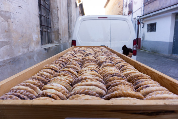 Este fin de semana, los vecinos y vecinas de Vilafranca han continuado preparando la fiesta de Sant Antoni. La mayoralía ha trabajado muy intensamente para elaborar los pasteles y traer al pueblo las barras de la barraca. Con la ayuda de familiares y amigos se han amasado un total de 13.077 pastissets, y con la participación de los arrieros, machos, mulas, caballos y yeguas se han bajado del monte las barras que formarán el esqueleto de la barraca.