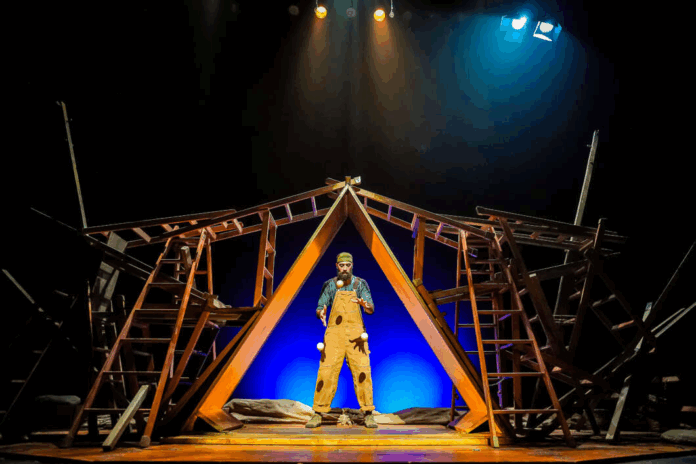 El malabarista construye estructuras de madera con equilibrios sorprendentes y un lenguaje lleno de sorpresas. A través de diferentes técnicas circenses, el espectáculo nos invita a reflexionar sobre nuestras raíces y los lugares que habitamos.