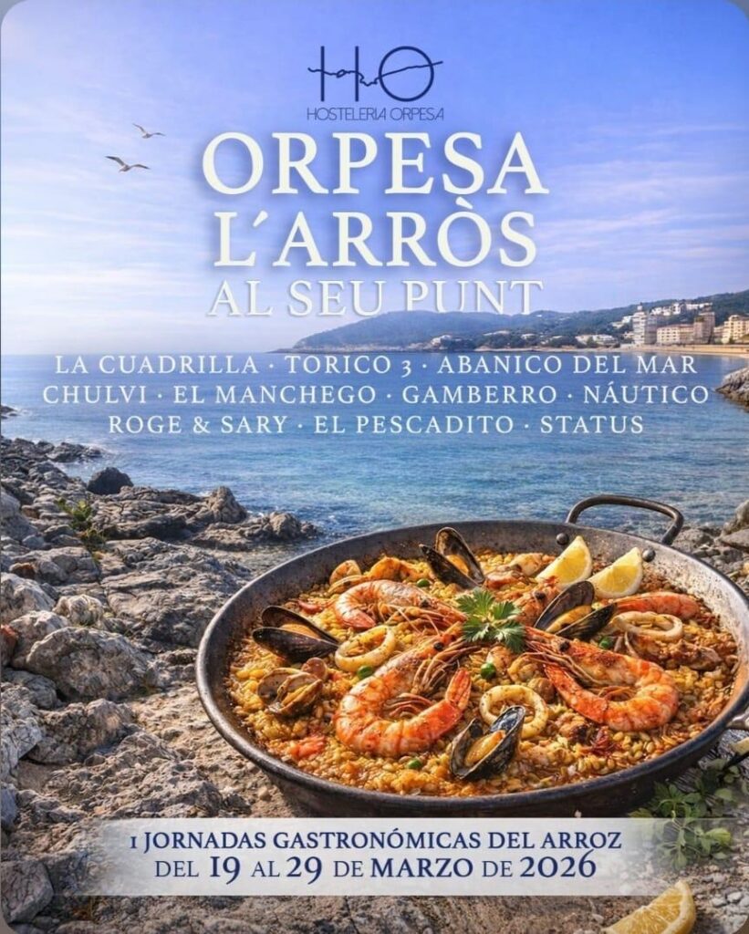 La asociación Hostelería Orpesa (HO) en colaboración del Ayuntamiento de Orpesa y varios establecimientos de restauración asociados del municipio, presenta las primeras jornadas gastronómicas del arroz 'Orpesa L’Arròs al Seu Punt', que se celebrarán del 19 al 29 de marzo de 2026.