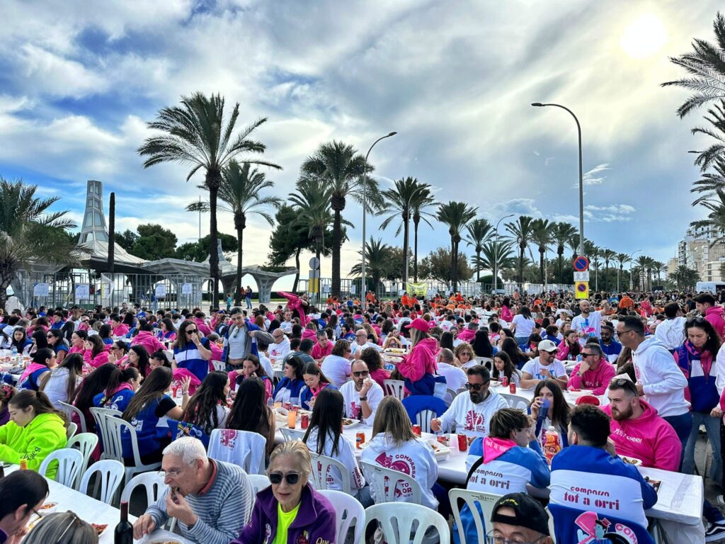 Cada comparsa elaboró sus paellas de las cuales dieron buena cuenta sus asociados en unas mesas que ocupaban todo el paseo Fora Forat.