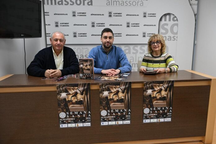 Almassora ha presentado la programación de la Semana Santa 2026, que se celebrará del 30 de marzo al 5 de abril y que está declarada Fiesta de Interés Turístico Provincial por su simbología y tradición. El concejal de Cultura, Vicente Blay Casino; el presidente de la Junta Central de Semana Santa, Juan Ramón Aparici; y la vocal de la entidad y secretaria de la Cofradía de la Virgen de los Dolores, Mariló Limo; han dado a conocer el calendario de actos religiosos que volverán a llenar la localidad de solemnidad, recogimiento y devoción.