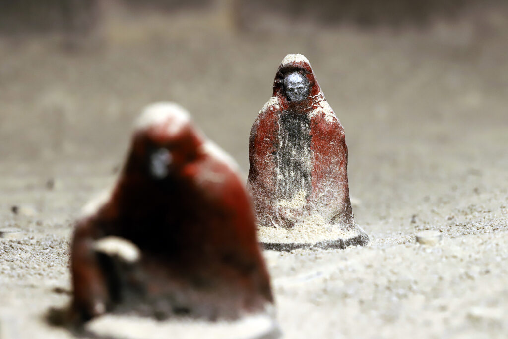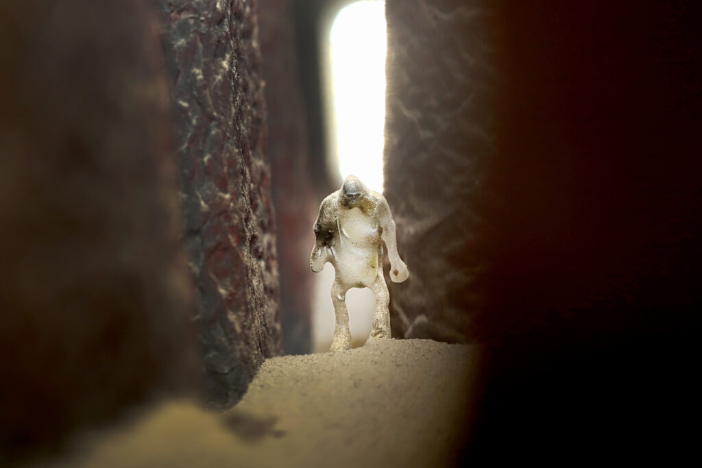 En el meu treball, el personatge s'entén com una figura arquetípica i anònima, una presència mínima que condensa comportaments i tensions de la societat contemporània. Són figures xicotetes, fràgils, moltes vegades aïllades o en situacions absurdes, que reflecteixen la vulnerabilitat de l'ésser humà. Habitualment treballe amb figures estereotipades que plantegen una reflexió sobre qüestions com el capitalisme, la gentrificació o el canvi climàtic, entre altres.