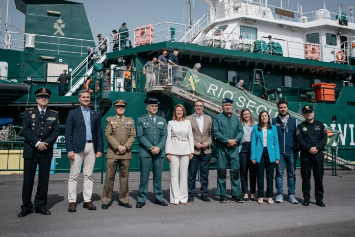 Tras la visita a la carabela Vera Cruz, la máxima edil también ha visitado el Río Segura, donde ha saludado al capitán de una de las patrulleras de altura más destacadas del Servicio Marítimo de la Guardia Civil, diseñada específicamente para la vigilancia de las aguas territoriales y la protección del orden público en el mar.